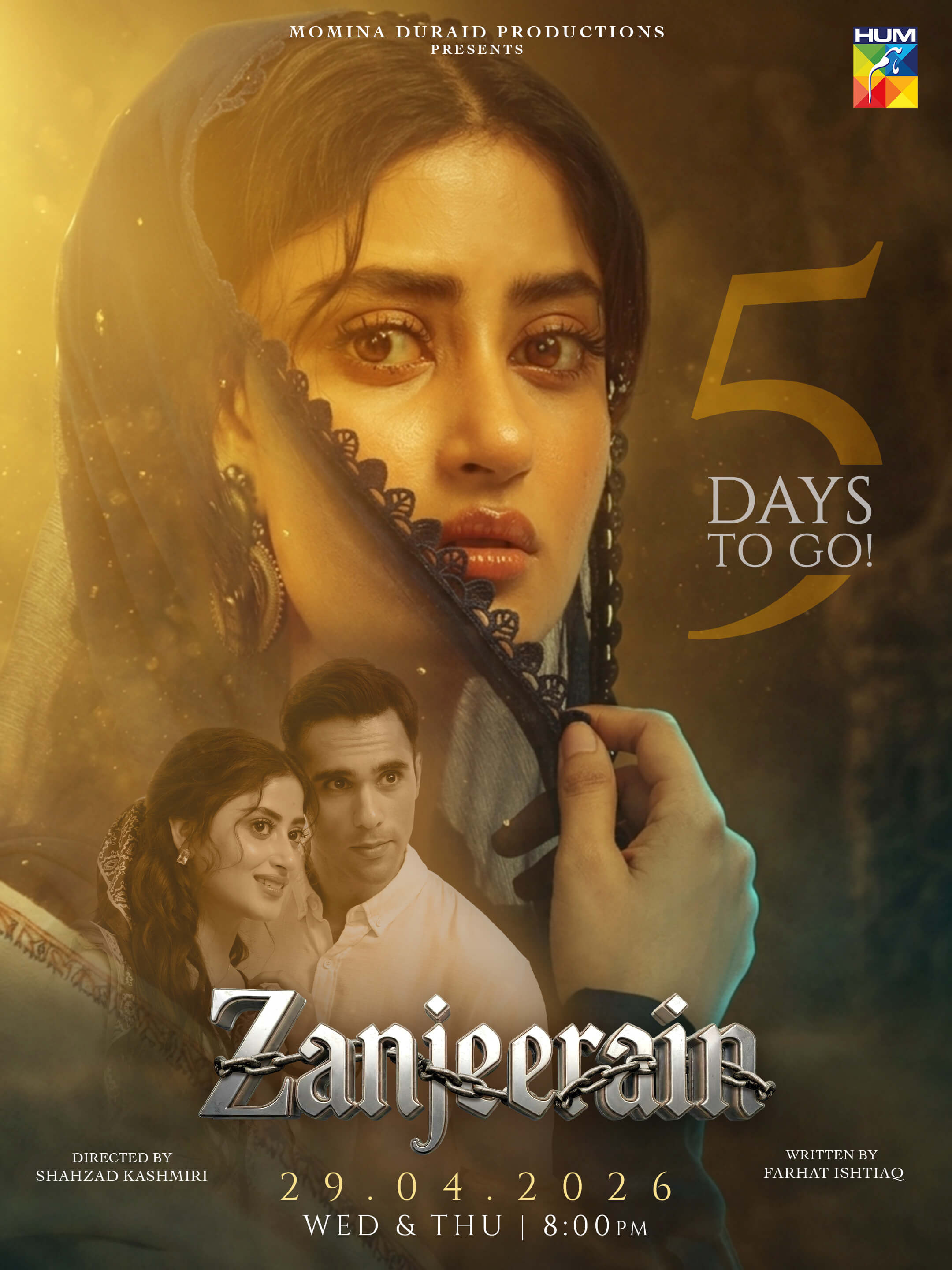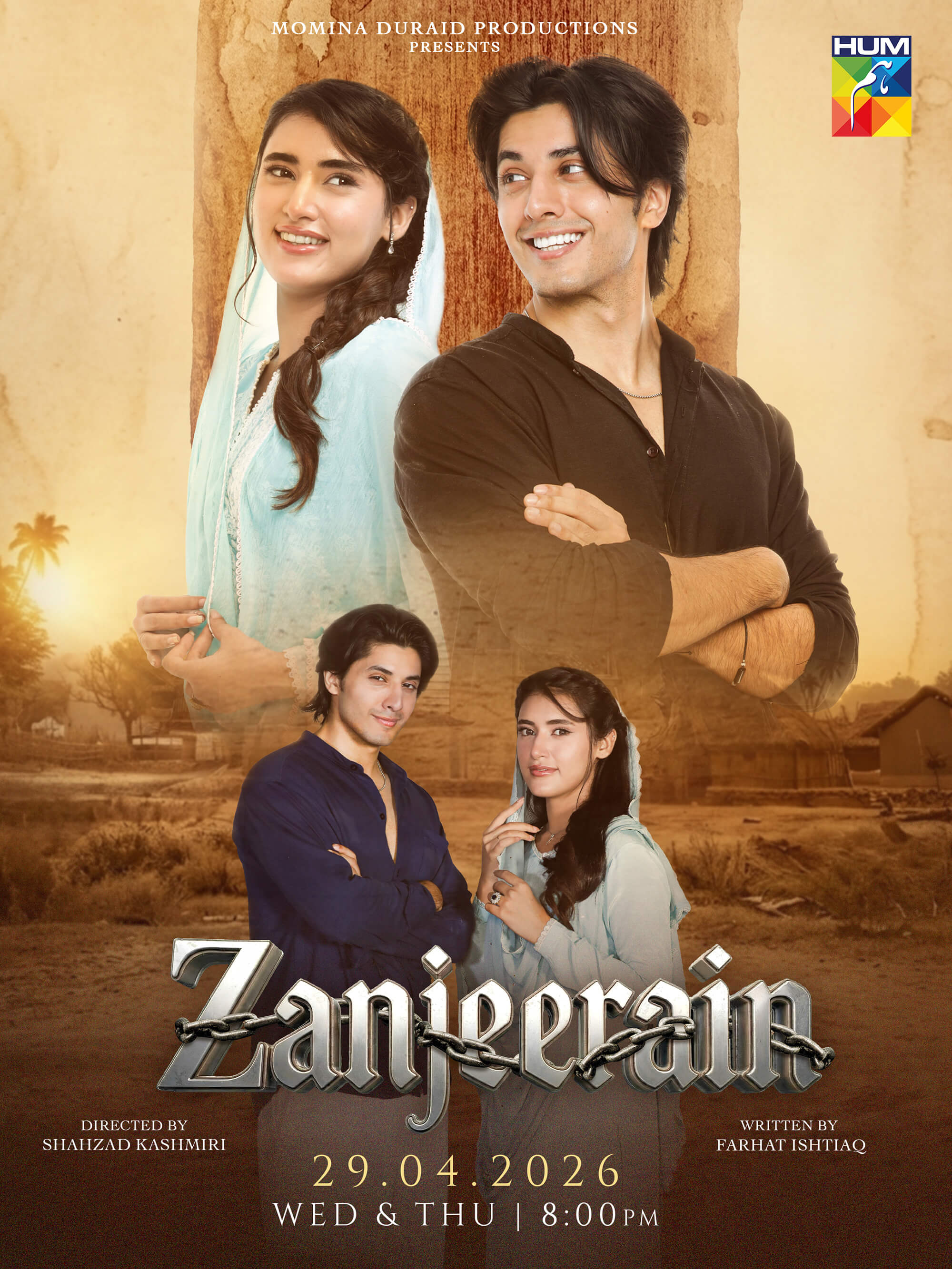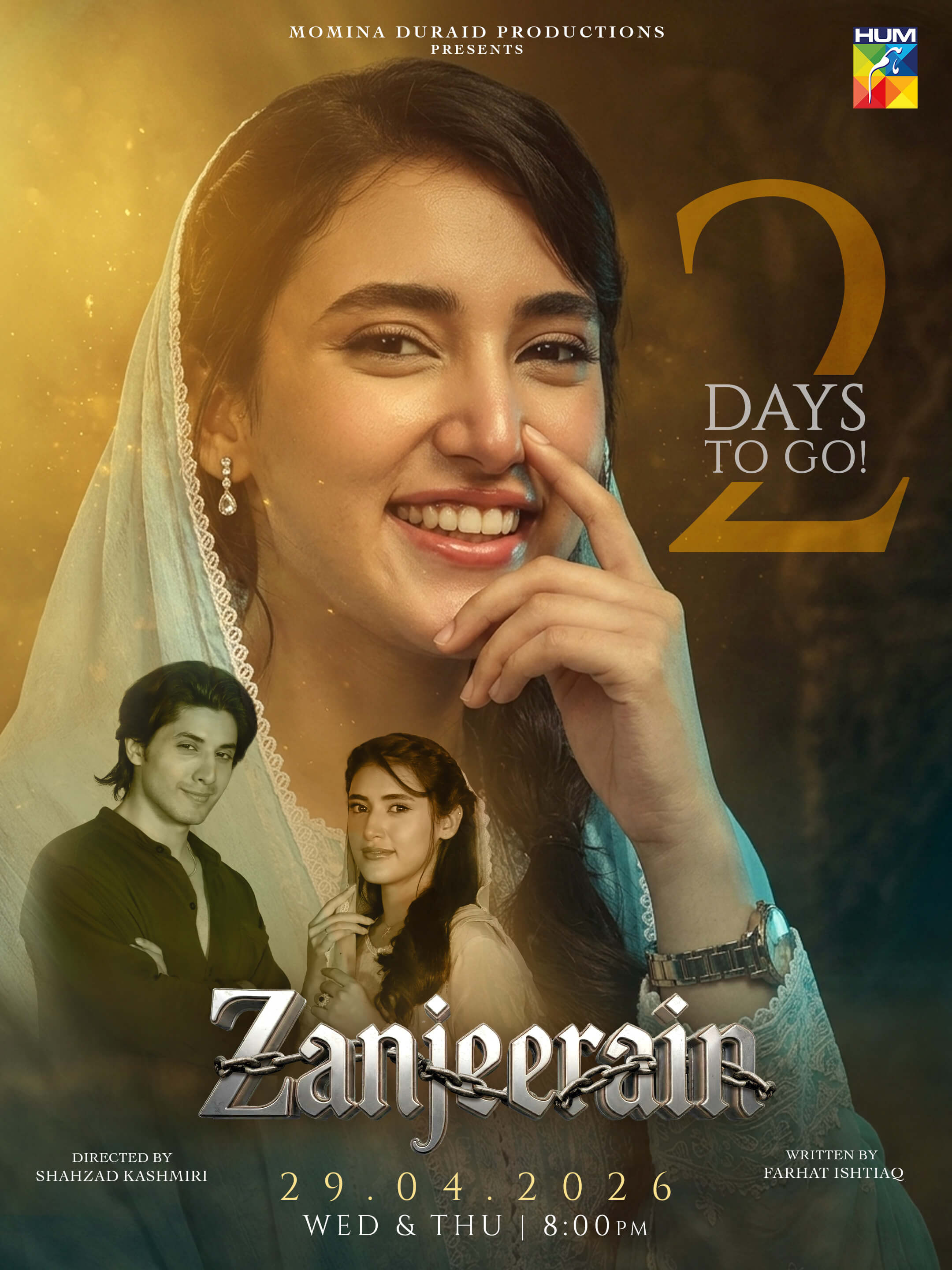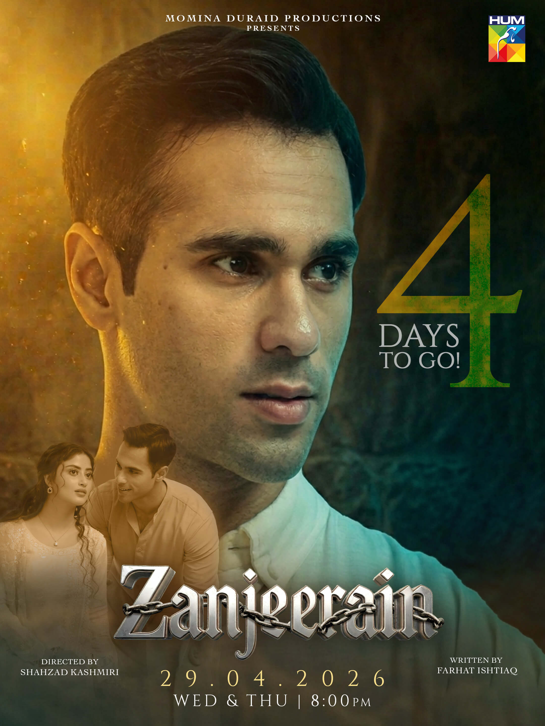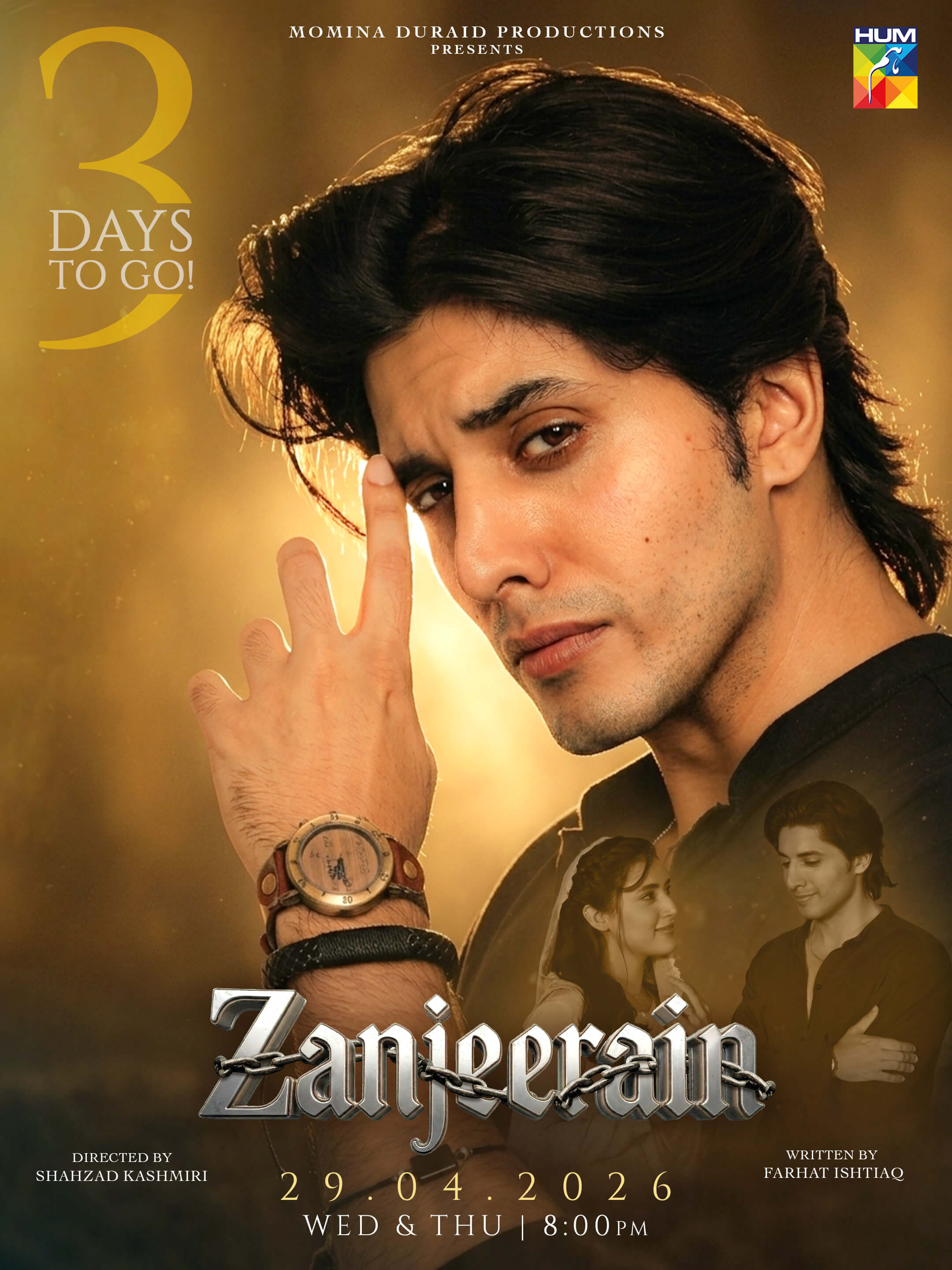My Role Social Media Promotion Credits Channel — Hum Tv Writer — Farhat Ishtiaq Director — Shahzad Kashmiri Producer — Momina Duraid Productions Managed the social media promotion for “Zanjeerain” on HUM TV from its launch till now, designing creatives and digital content to boost audience engagement.